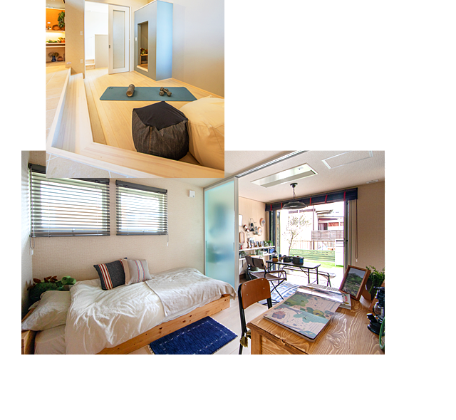 休日には仲間を呼んでホームパーティをしたり、楽しい時間を共有いただけます。リビングは、ヨガやエクササイズ、読書、趣味などそれぞれの家族に合わせた多目的ルームとして使用。