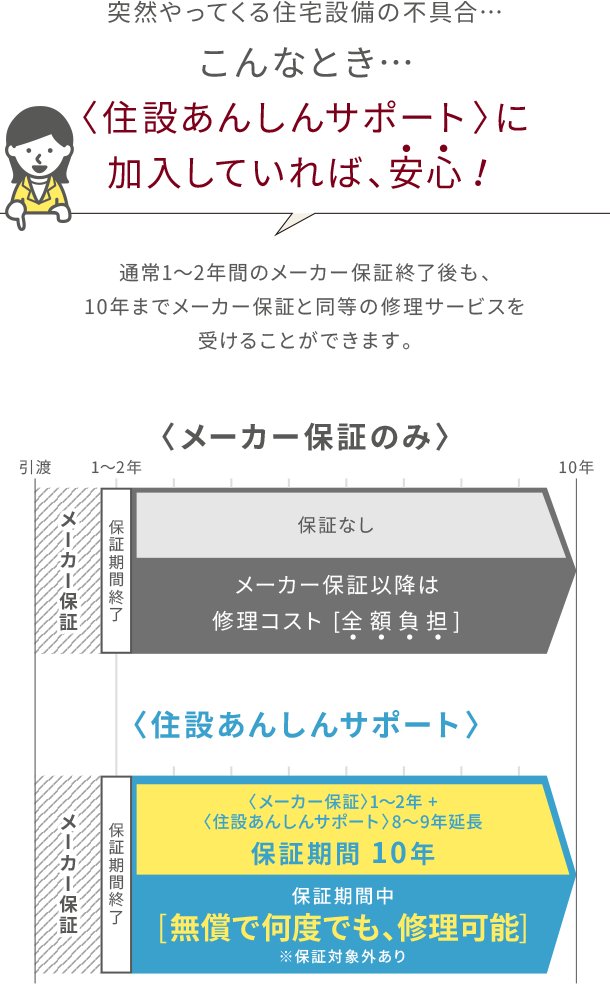 10年間無料で出張修理や部品交換が受けられます。