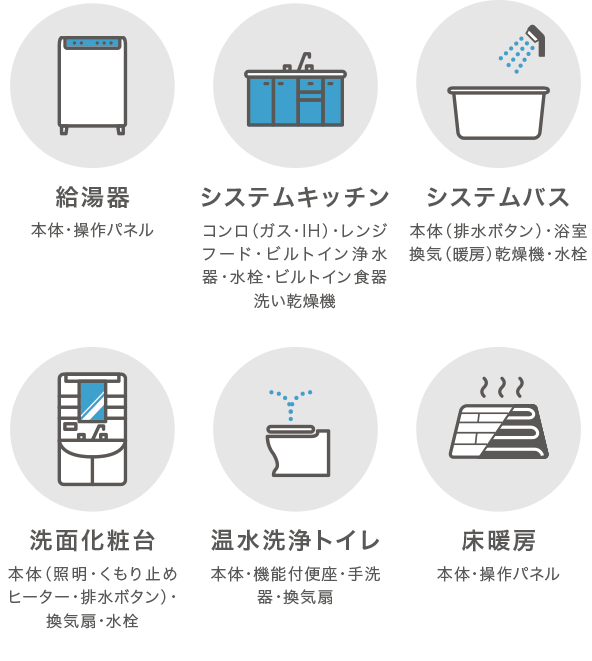 住宅設備機器に保証対象となる
