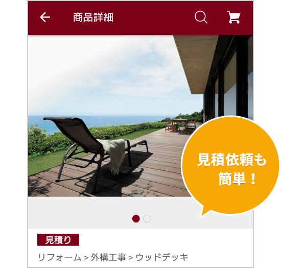 必要なときに最適なものを居住年数に応じたインテリア商品やリフォーム商材、ウッドフレンズ施工だからできるご提案。もちろん、商品検索・見積依頼も簡単!