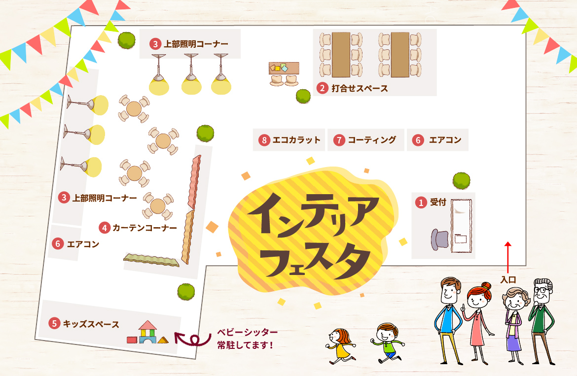 専属コーディネーターが、メーカーや施工業者と一緒にインテリアをご提案する販売会イベントです。