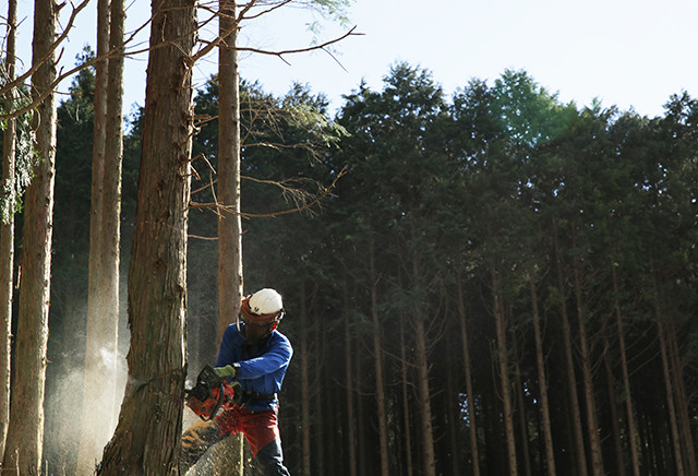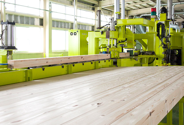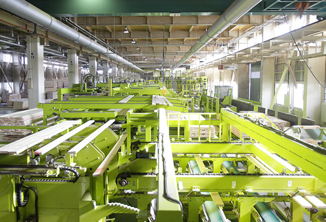 材木を原木から直接仕入れ、自社工場や提携工場で製材・加工し、販売に至るまですべて一貫して行っています。